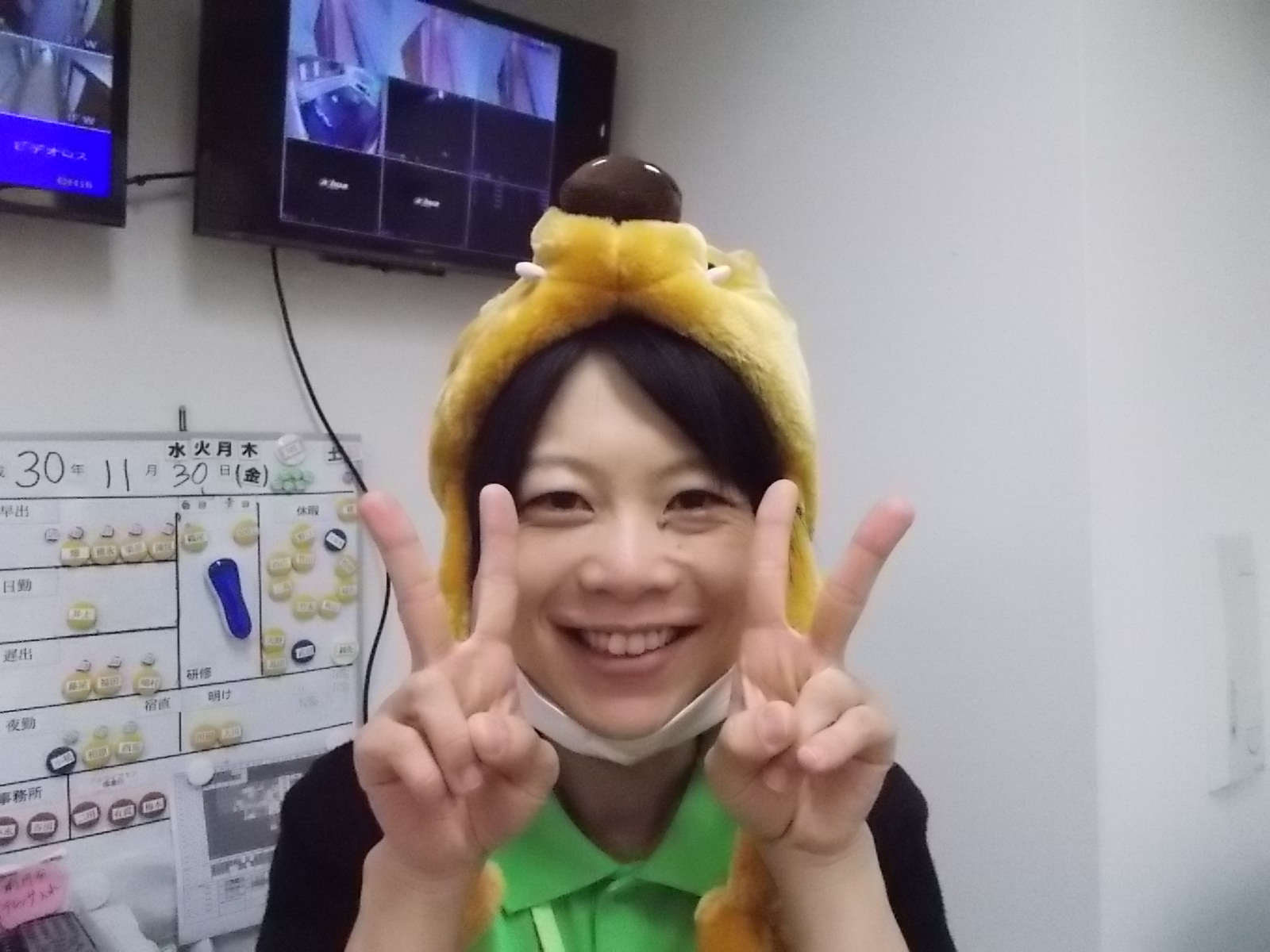 こころ君もイノシシの帽子被ってますね(#^^#)