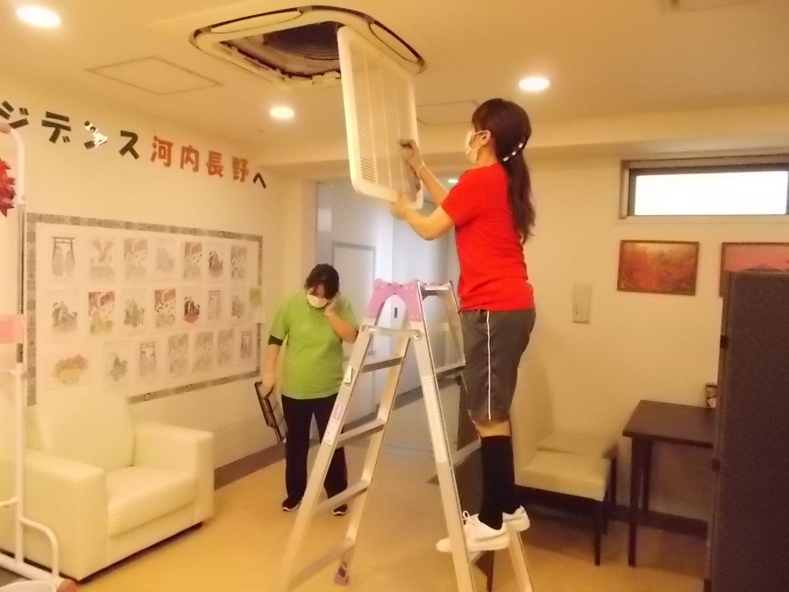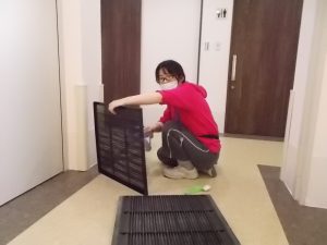 今日は環境委員さんたちがエアコンフィルタの洗浄をしてくださいました。