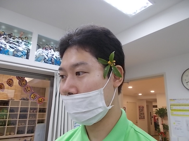 スタッフのNさん🐎にも金木犀を付けてあげました❀