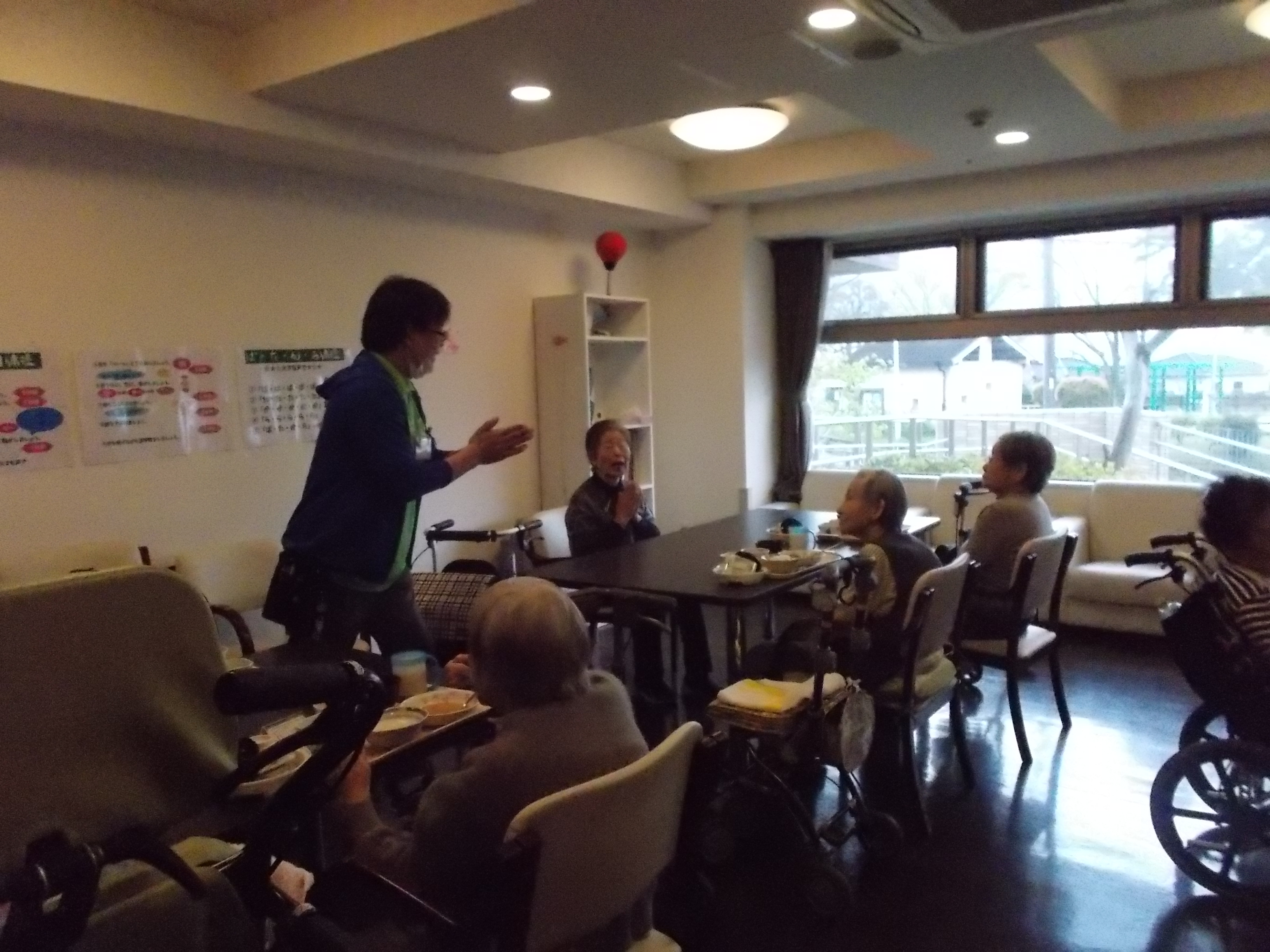 お誕生会も派手に出来ないのでレク委員さんがお食事の時間に各階で