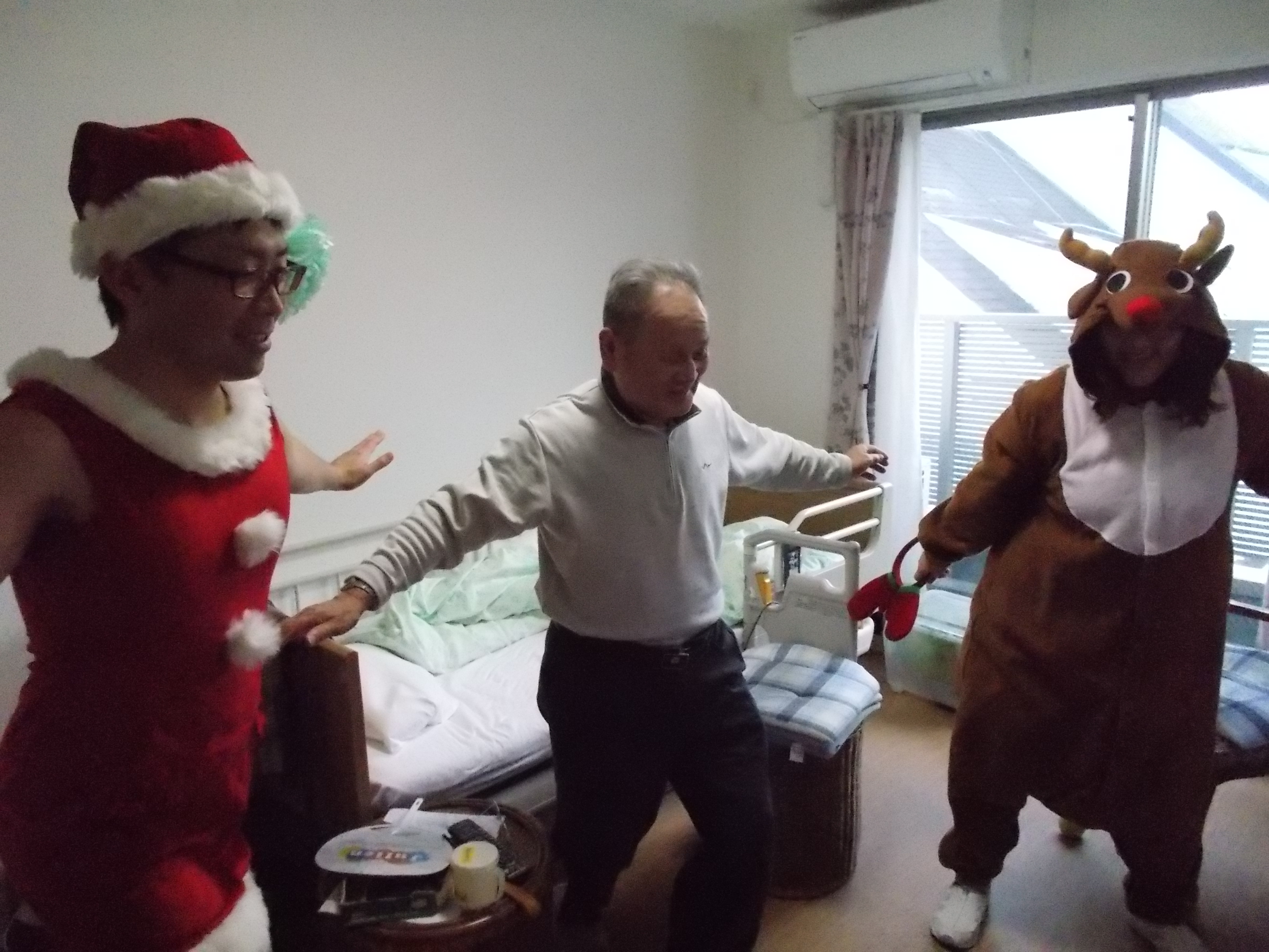 右の写真はO様のお部屋で皆で体操をしたそうです(笑)
