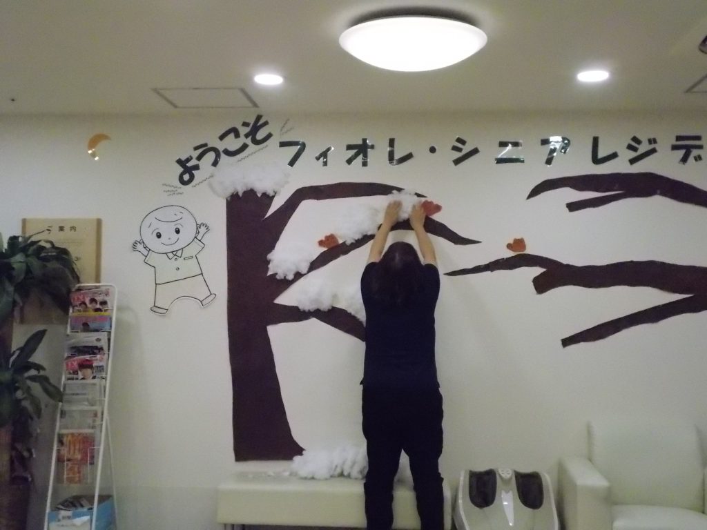スタッフのみんなは一生懸命館内を12月仕様に飾り付けしてくれています。
