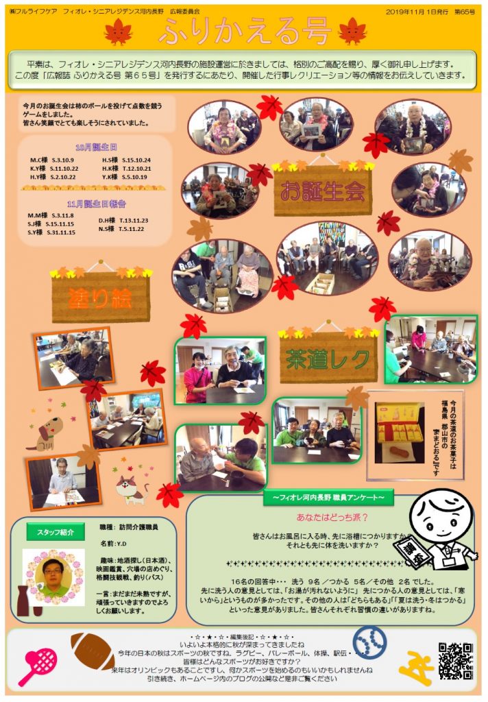 毎月発行の広報誌”ふりかえる号”11月号が完成いたしました~👏