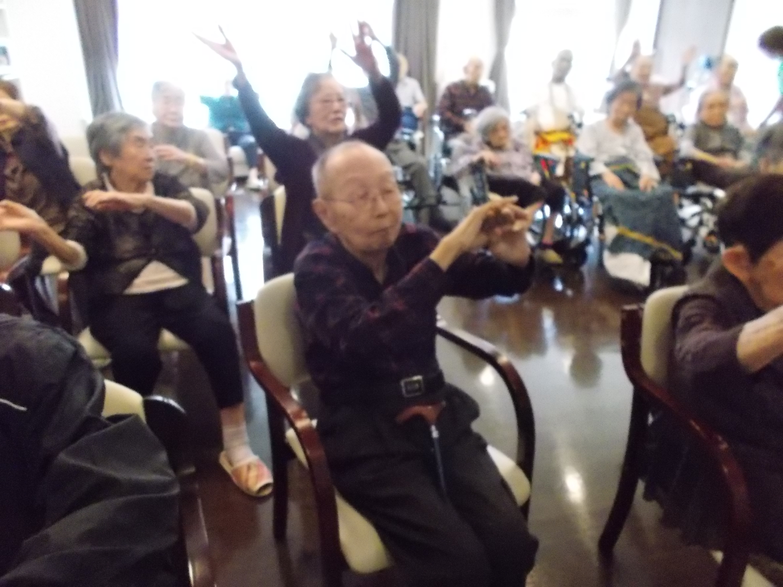 ハッピーバースデーのセレモニーの後は、恒例のラジオ体操です。