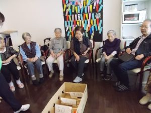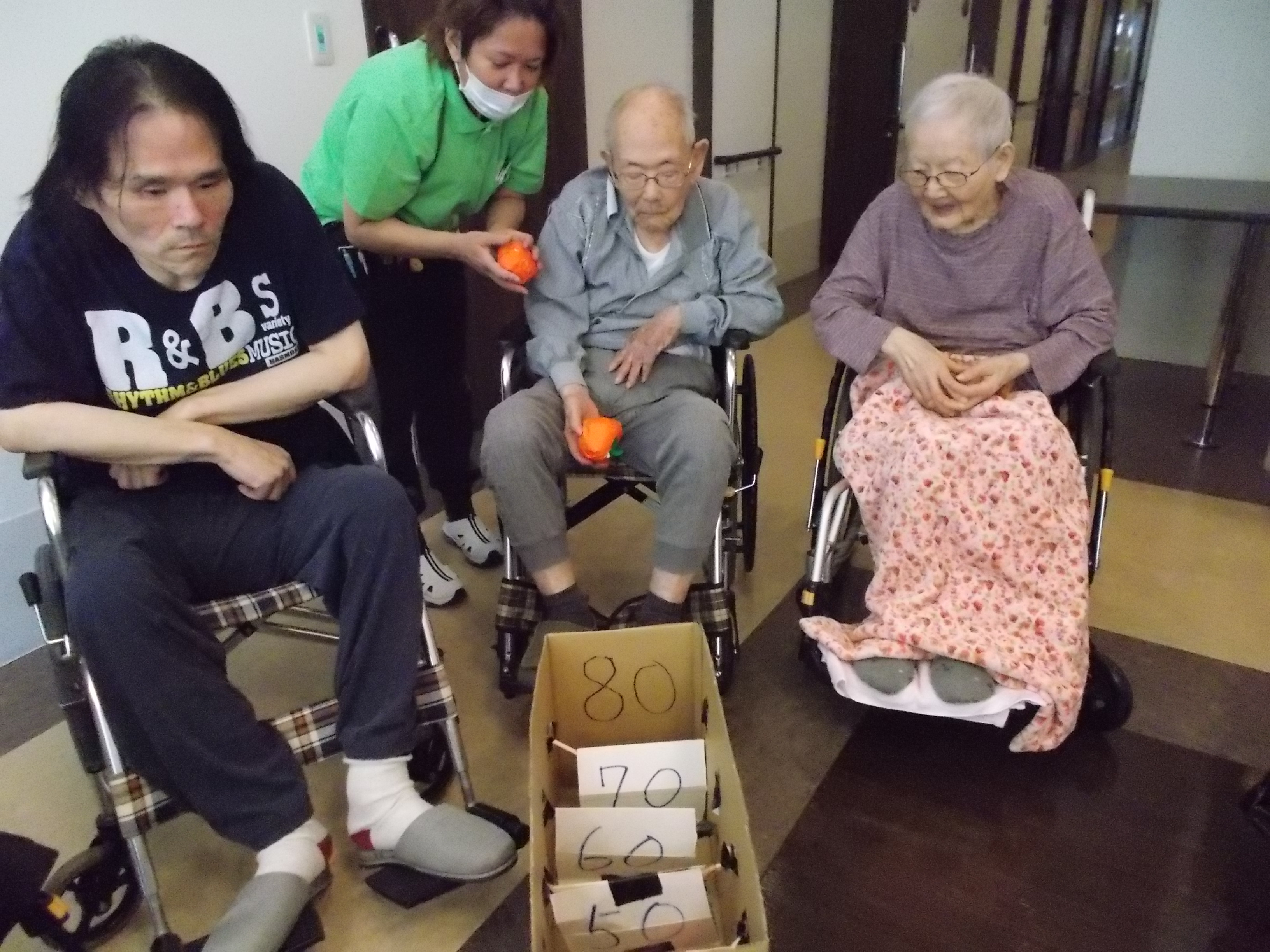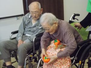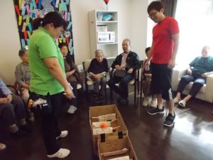 1Fに実っていました柿の実を使って玉入れ大会です。
