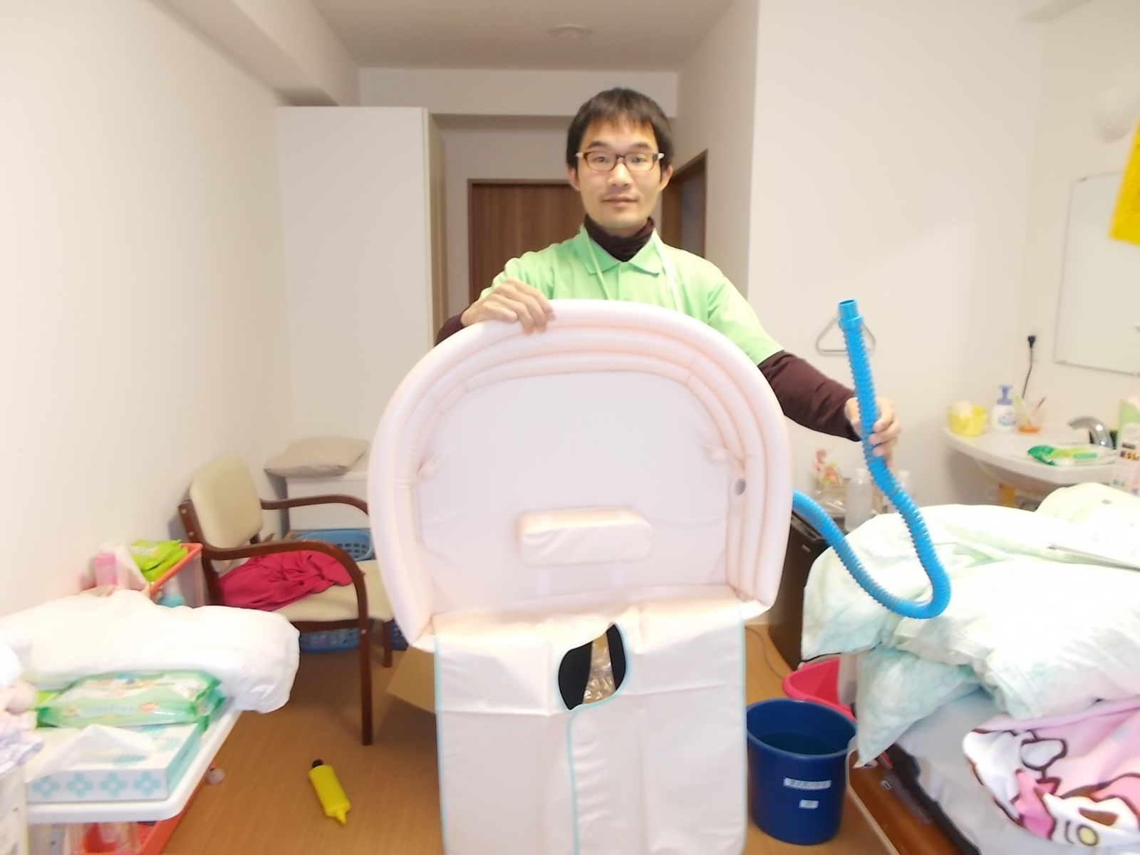 体調がすぐれないかたの為に洗髪器を導入いたしました。商品名は「サッパリさん」(笑)