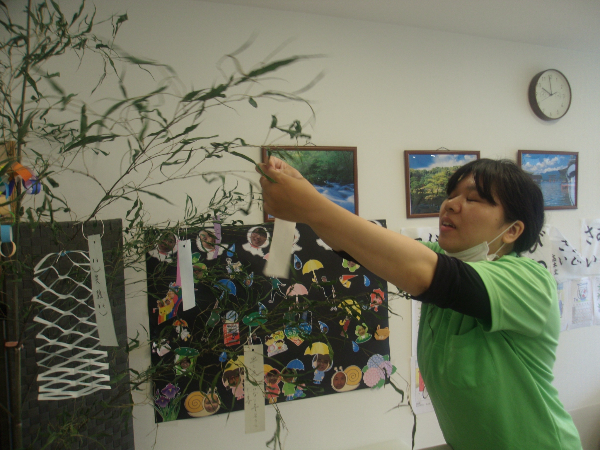 皆さんにお願い事を書いていただき飾りつけを始めました。