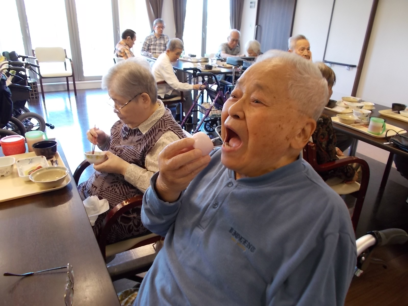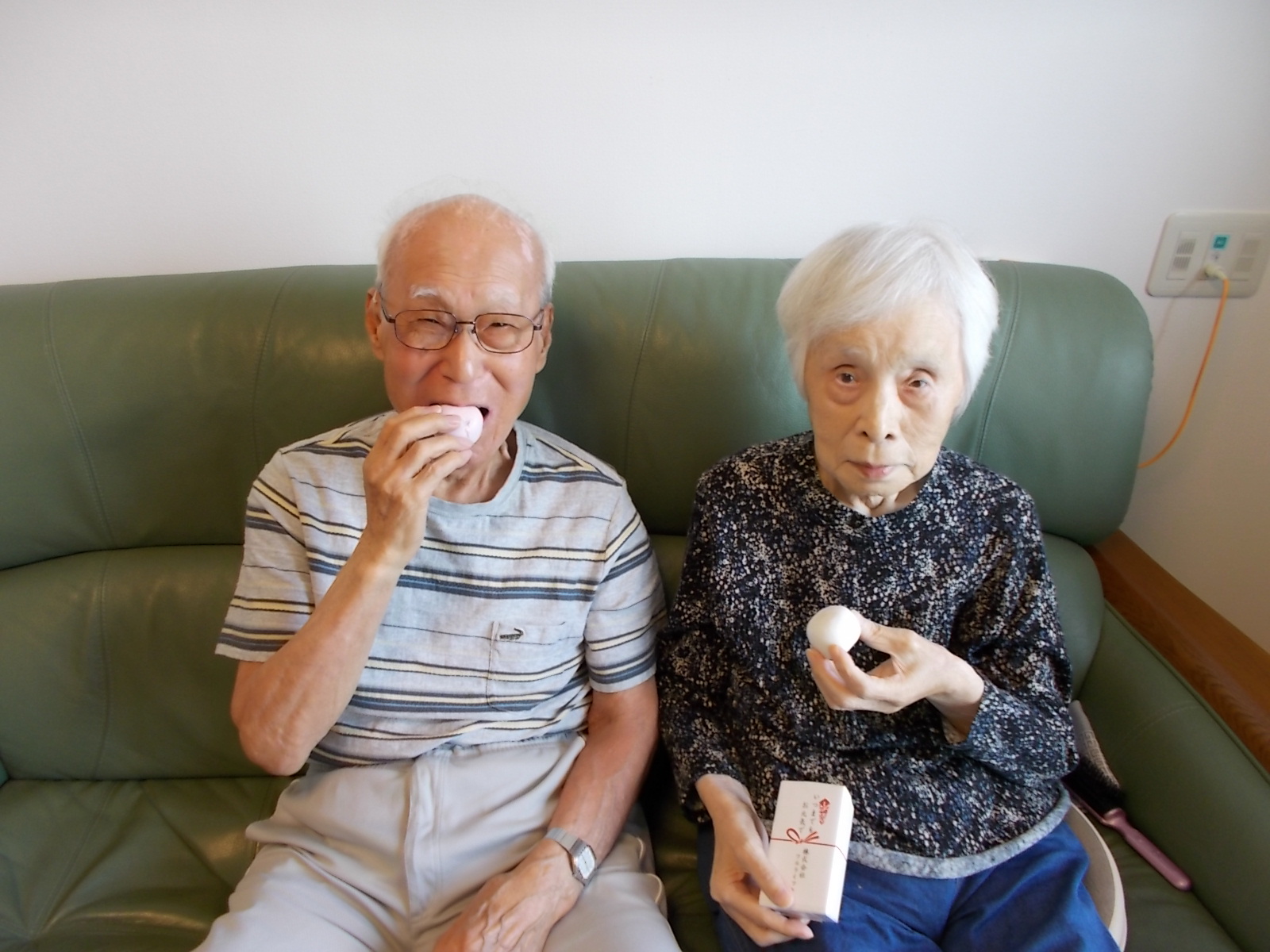 お昼ご飯の際に紅白まんじゅうをお出しいたしました。