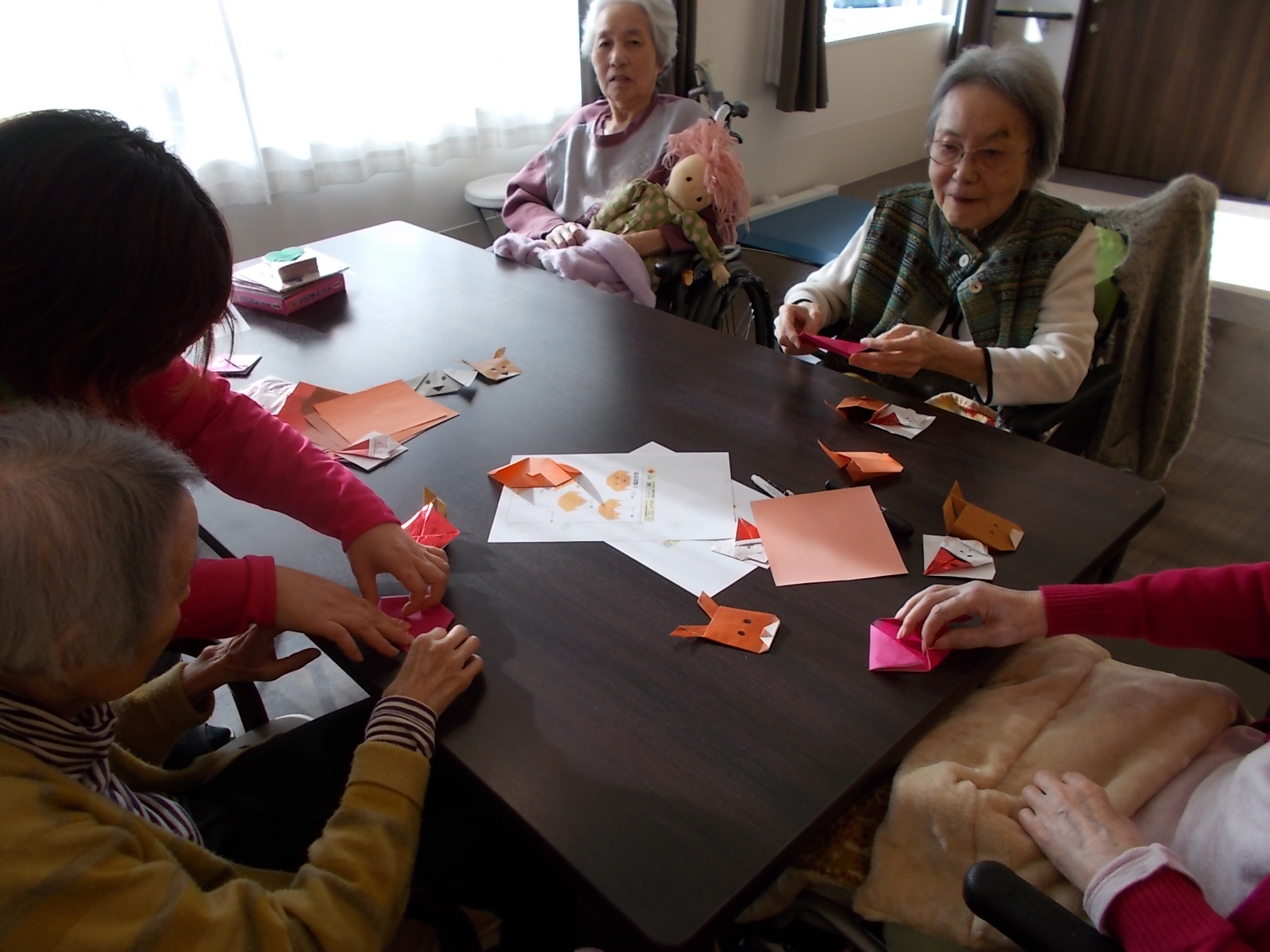 ちょっと空き時間が出来ましたので、とスタッフさんたちがご入居者様をお誘い。