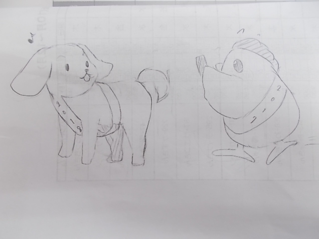 何かフィオレ河内長野だけの縁起物が欲しいなと思い、「↓こういうの描いて」と娘に言ってみました。