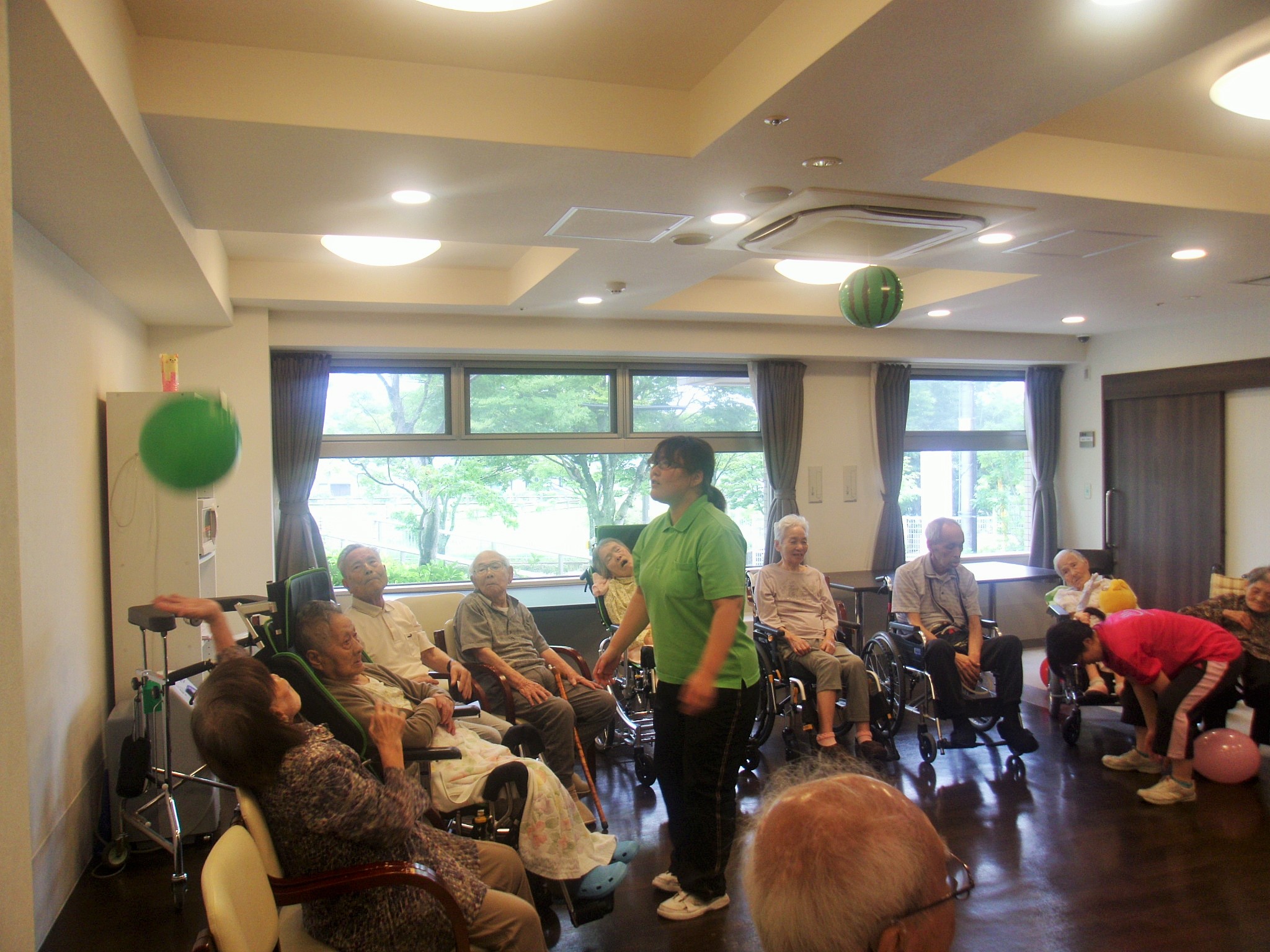 ハッピーバースデイを歌い、その後は先日好評だった風船バレーをしました。