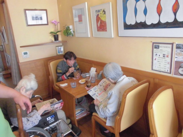 コーヒーを飲みながら雑誌や新聞を読みお話をされ大盛り上がり(^_^)