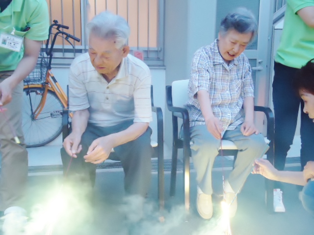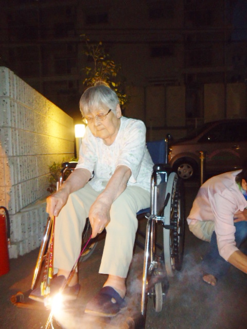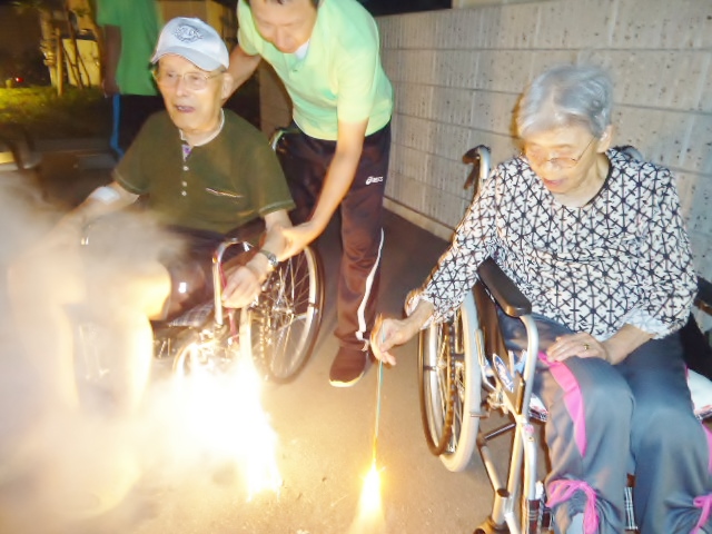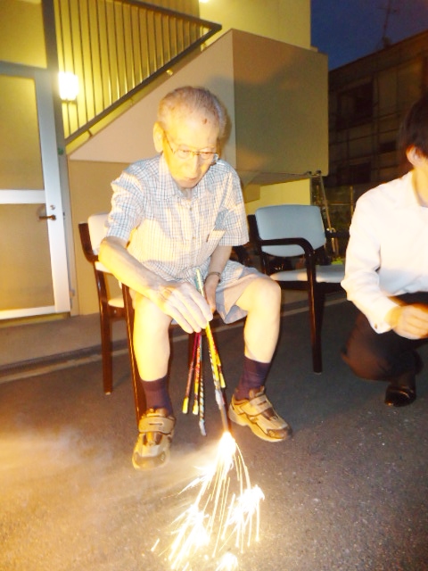 入居者のみなさん、童心に帰って花火を楽しんでおられました。