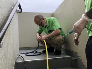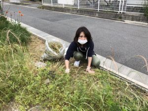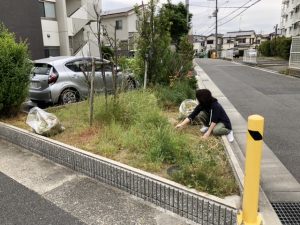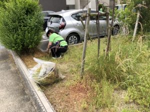 先日、駐車場の花壇に雑草が伸び放題になっていたり、非常階段も汚れていたので、皆んなで草刈りと掃除をしました(^ ^)