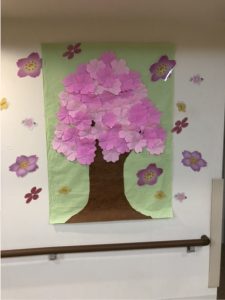 お花見に行けないので、M職員さんが桜の木を作って各階に貼ってくださいました(^^)v