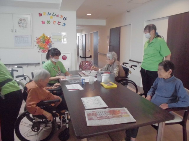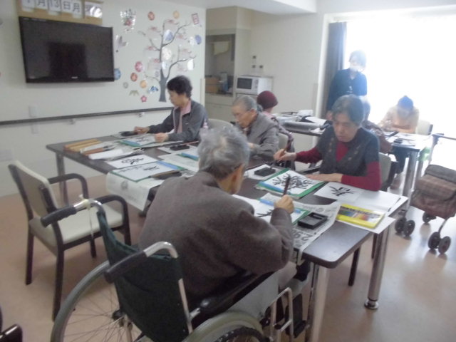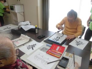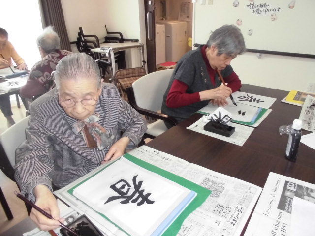 本日は習字&塗り絵レクを行いました
