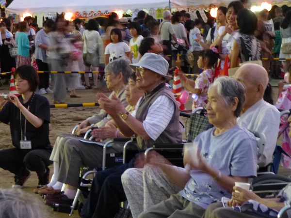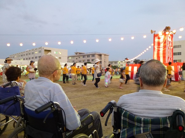 今日の外出レクは、施設の近くにある広場で「夏祭り」に参加してきました♪