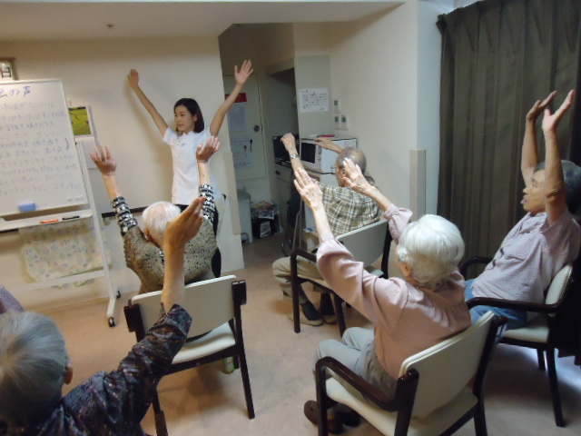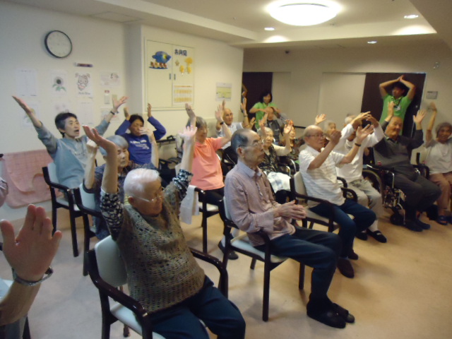 常駐しているリハビリの先生による、リハビリ体操を実施しています(^^♪