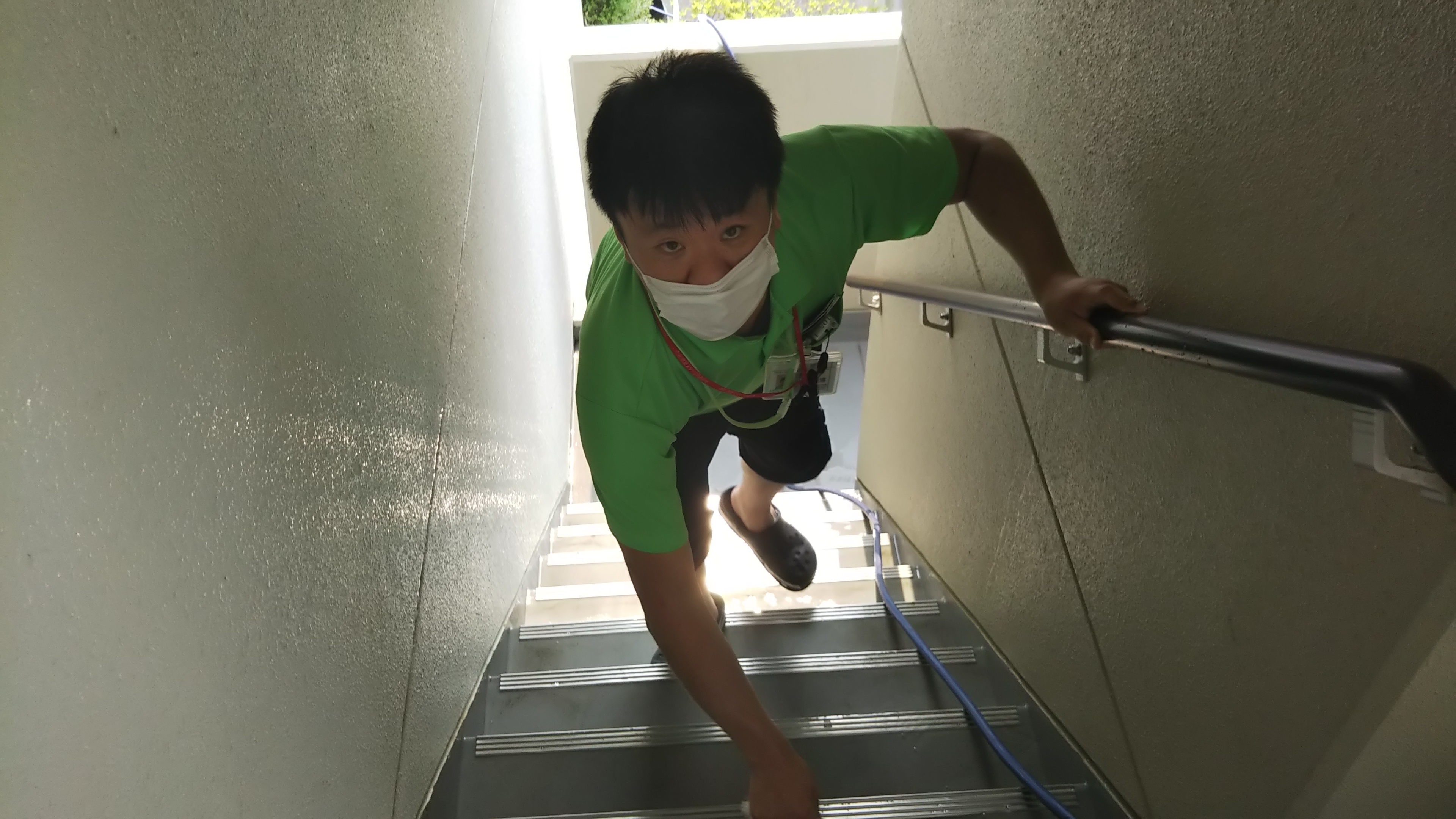ホースを上まで引っ張り階段清掃をしてくれてました(^^)/