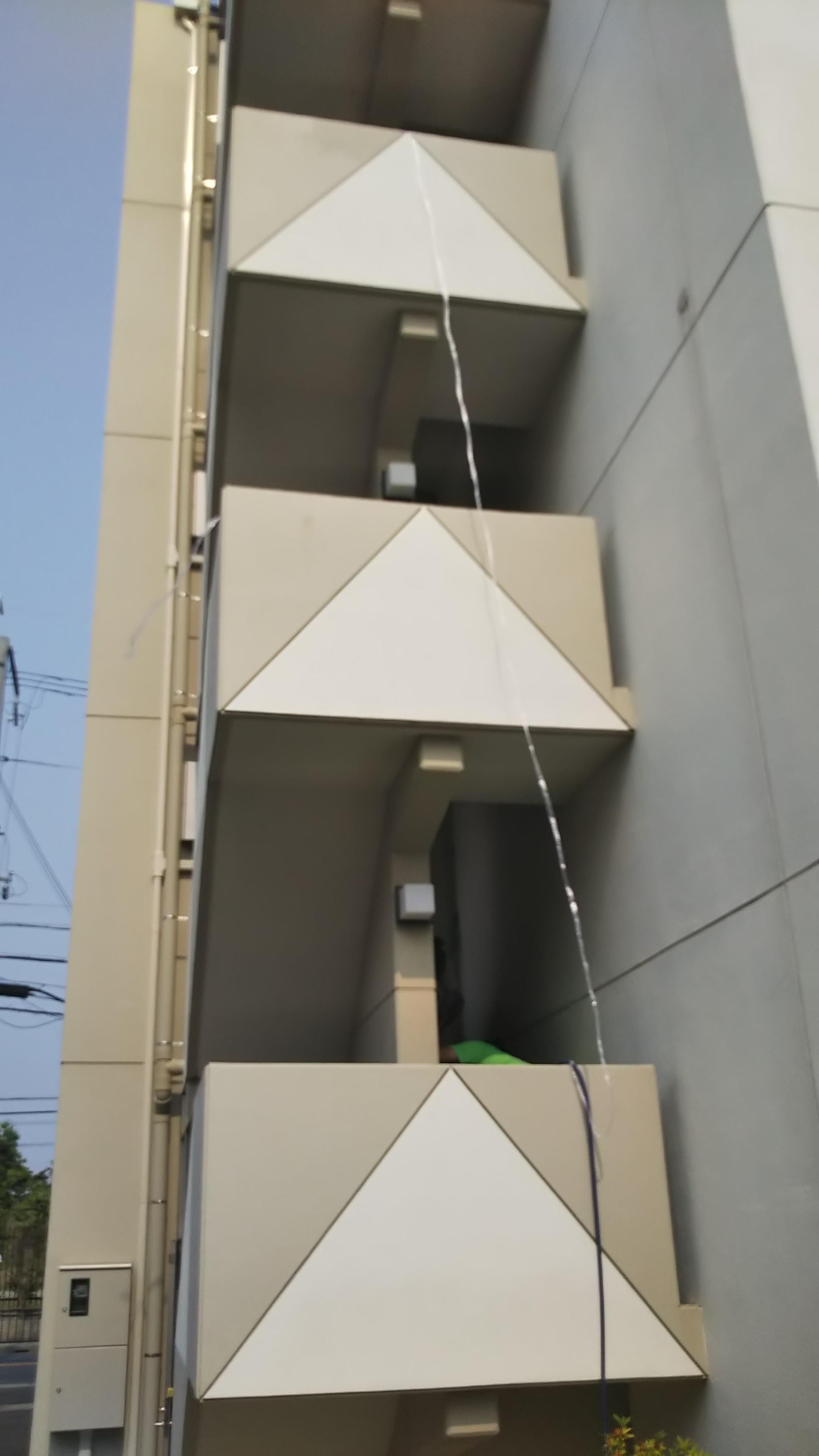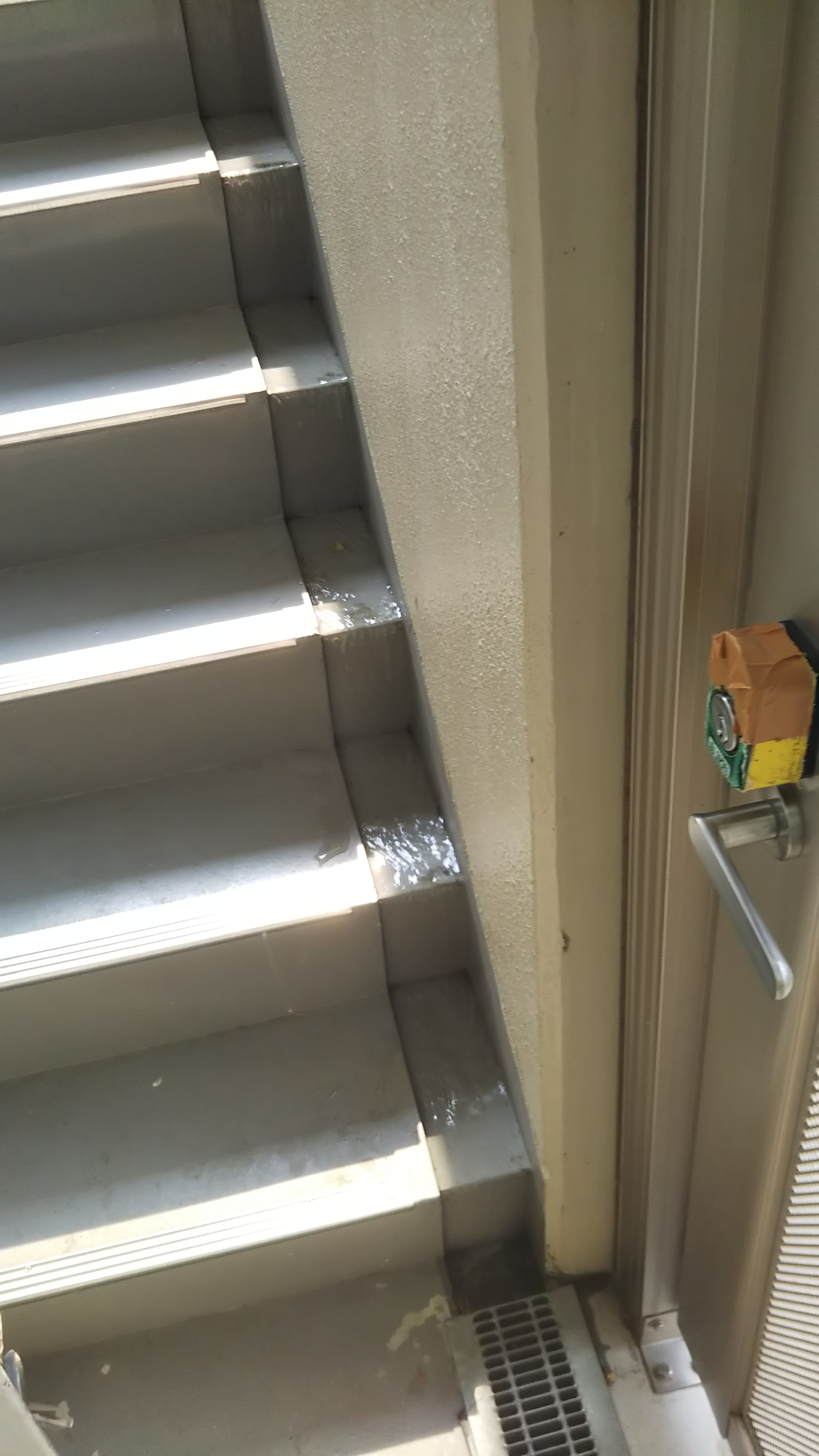 晴れているのに階段から水が・・・