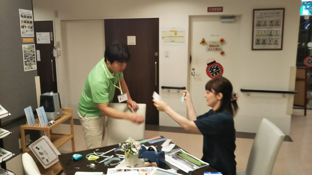 Fサ責が入居者様とお話をしながら😃