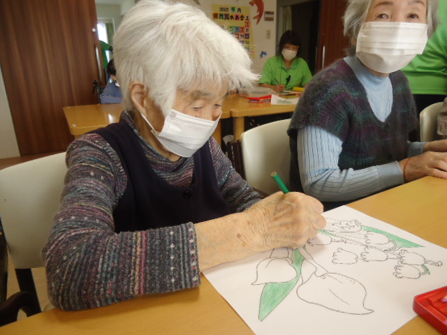 皆様一生懸命にお花の絵に色を塗ってくださいました\(^_^)/