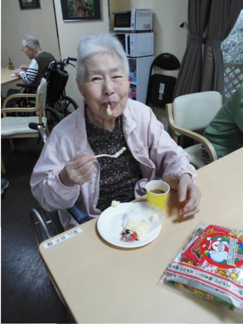 サンタさんからのプレゼントとクリスマスケーキを召し上がっていただきました☆