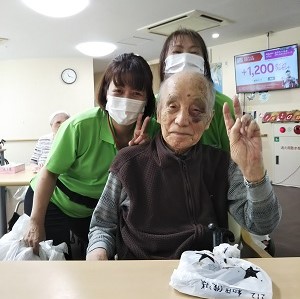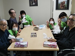 敬老の日をお祝いして、皆さんに靴下と洗濯ネットをお渡しさせて頂きました!