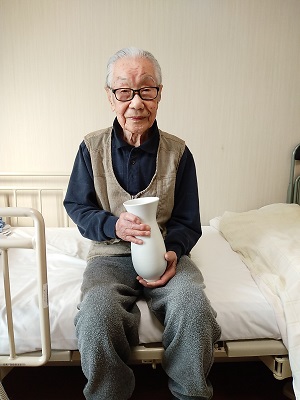今度は県知事からのお手紙と百寿の楯、それに出石焼の花瓶でございます✨