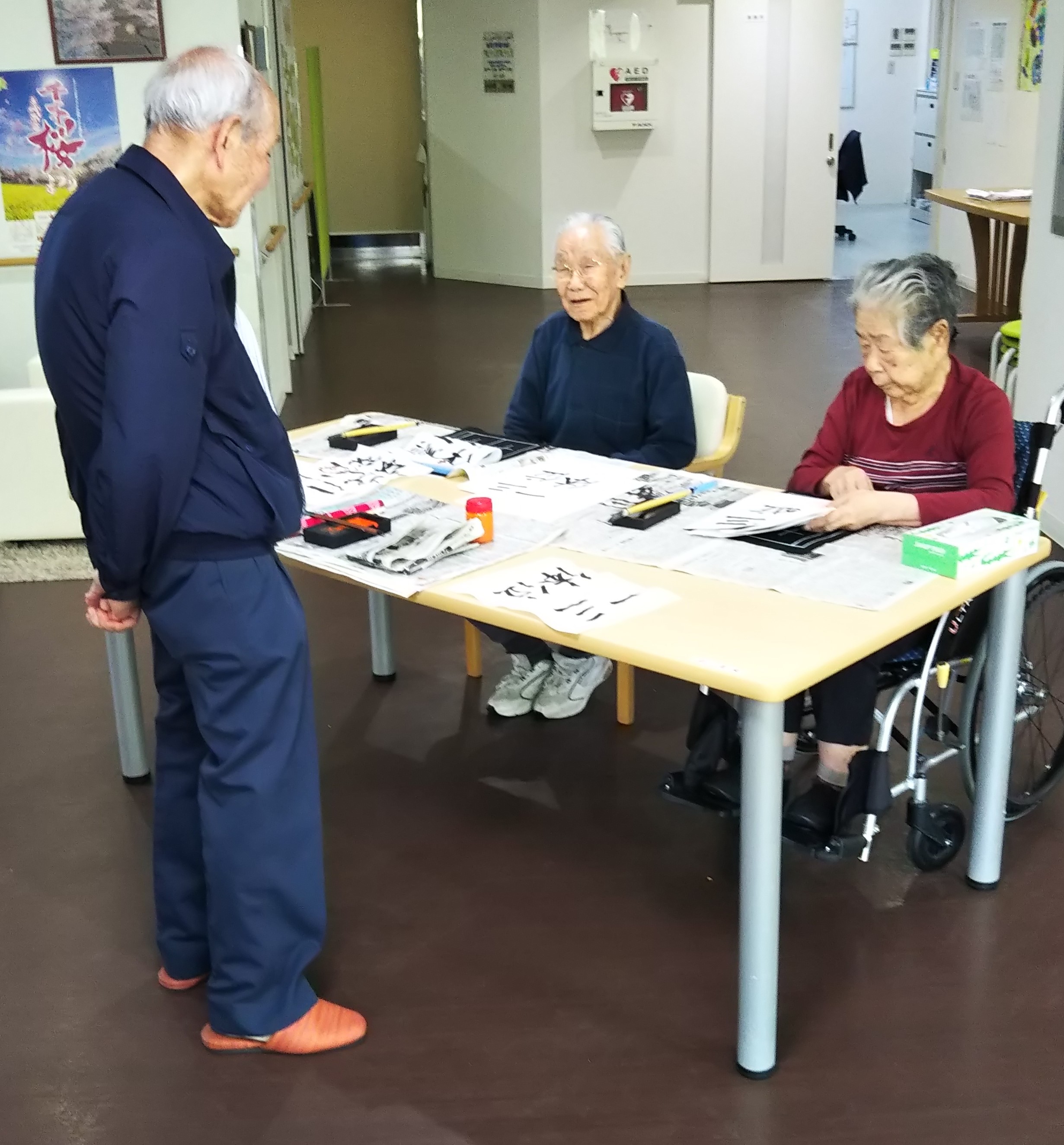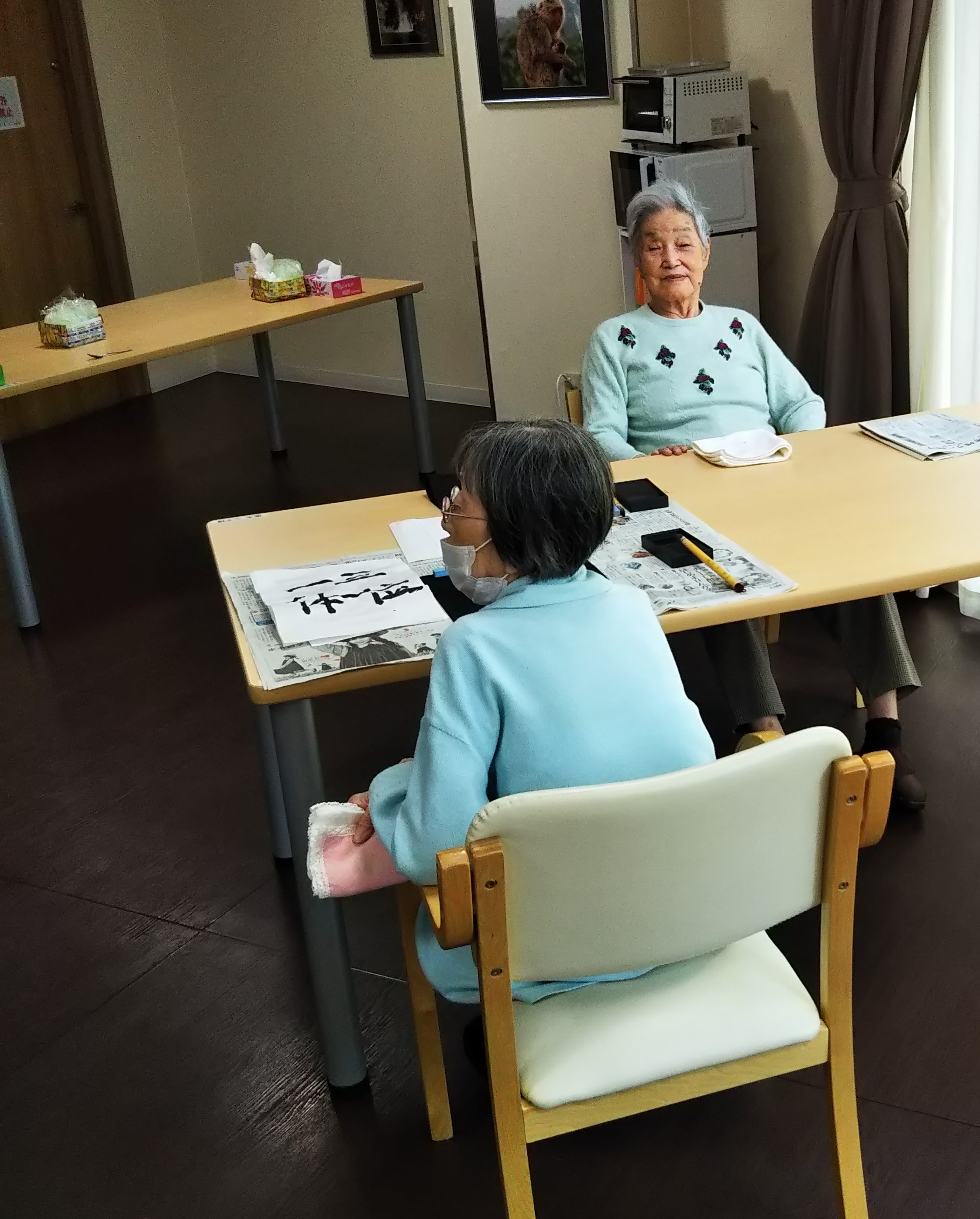 今日は2回目のお習字レクです 。皆さま、真剣な眼差しで取り組んでます。( ^)o(^ )