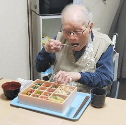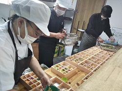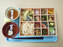給食会社の皆様が朝早くから頑張ってくださり、ステキなお弁当を作ってくださいました!