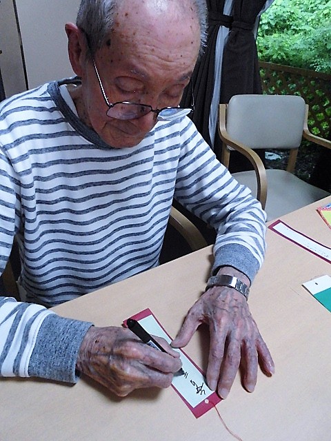 先日の七夕に笹飾りをしました(*’ω’*)