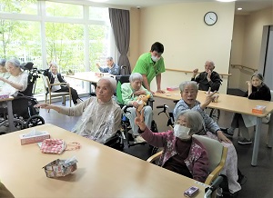 Y職員の声に合わせて手を動かします🙋‍♂️