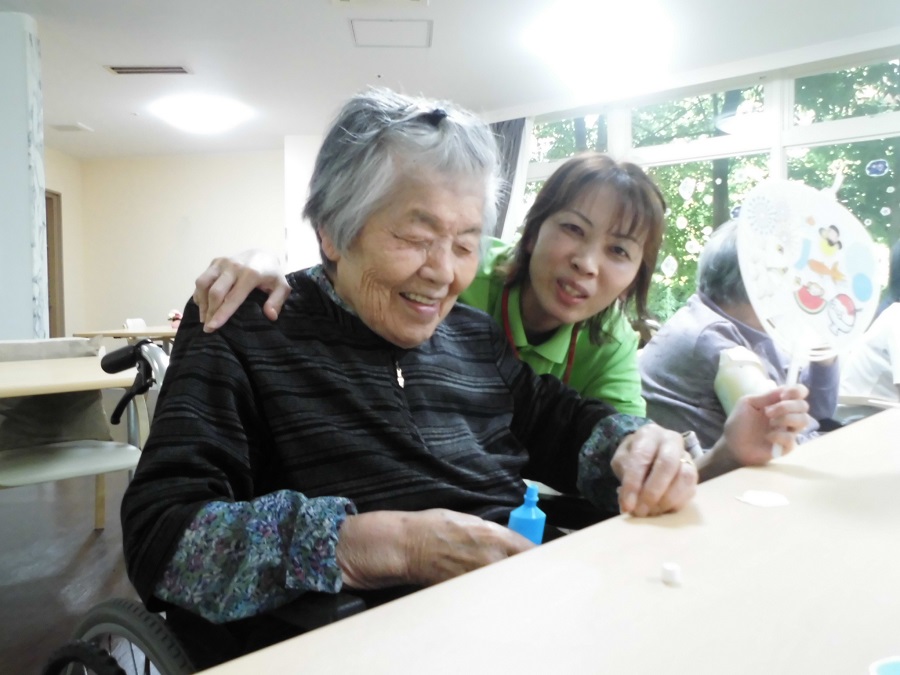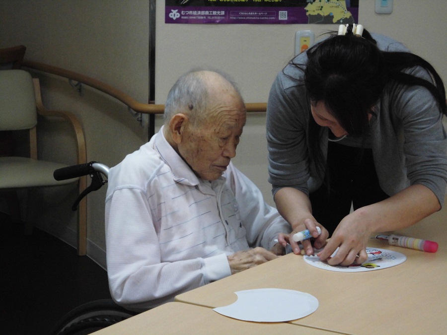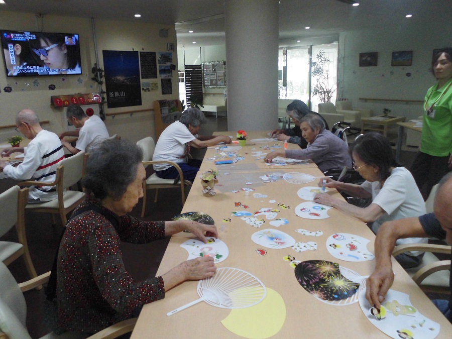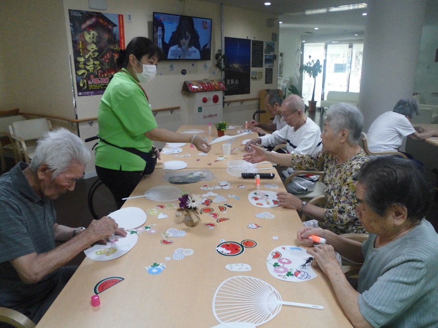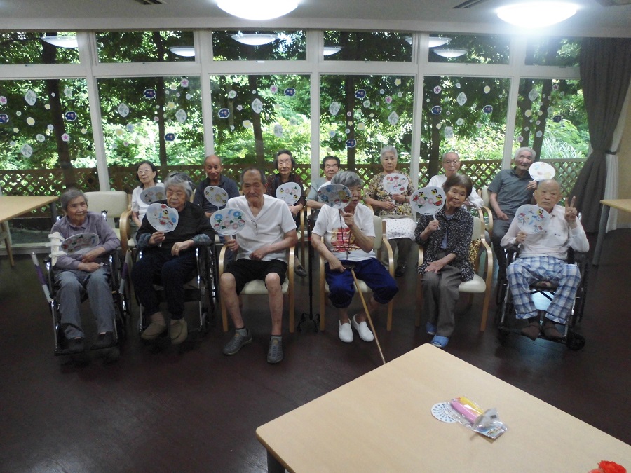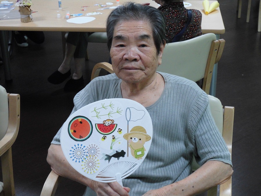 「初めてうちわ作るんだな~」と緊張していたご入居者様♪