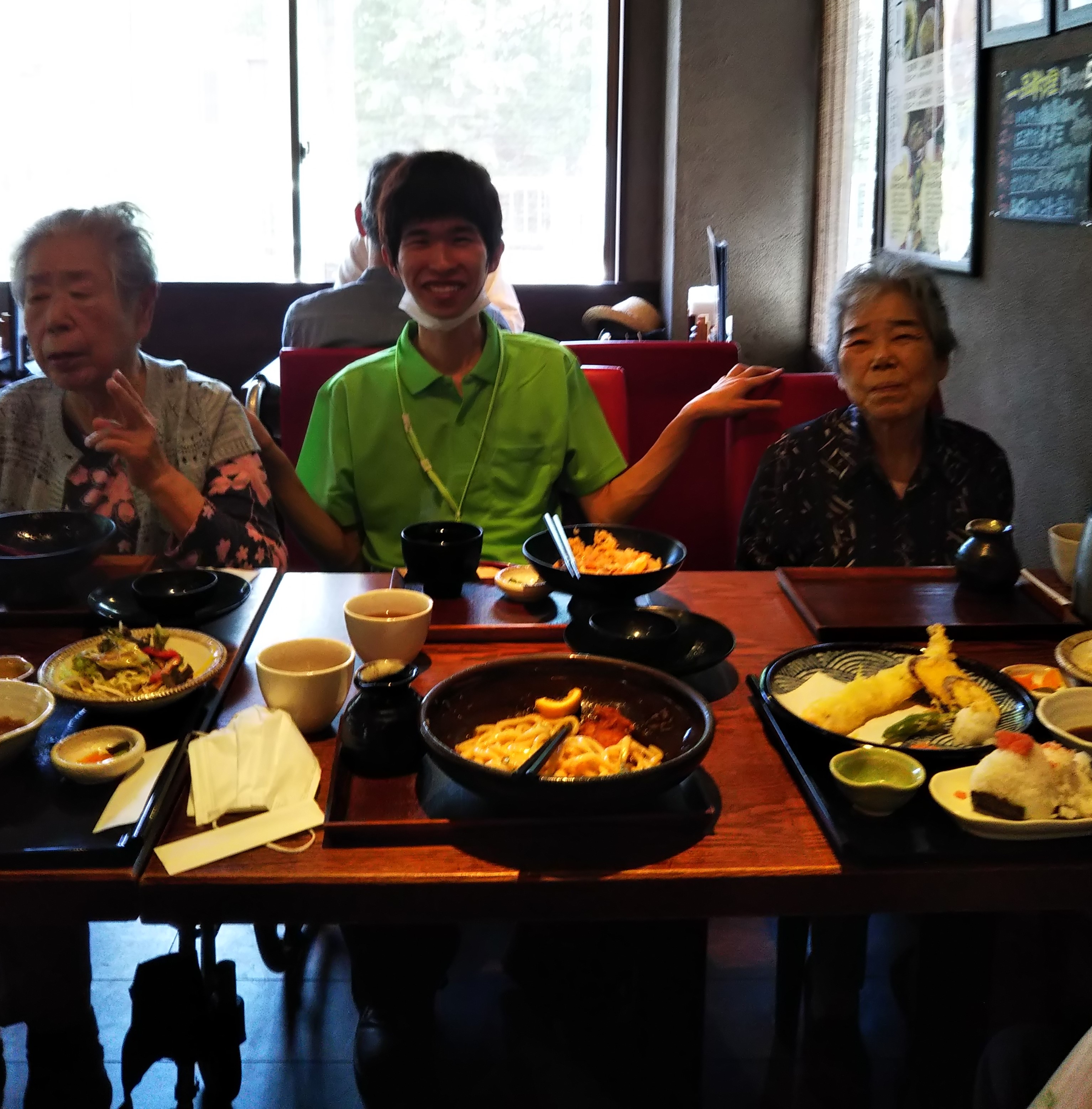 外食レクで近所のおうどん屋に行ってきました。皆さん、いい食べっぷりですね(*^^*)美味しそうに食されてました(´▽`*)