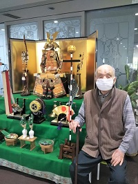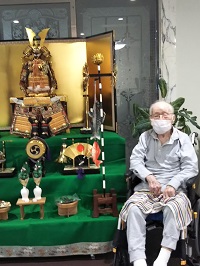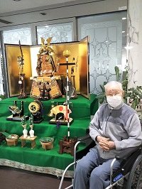 男性陣は五月人形と一緒にパチリ📷 併せてプリンも頂きました~🍮