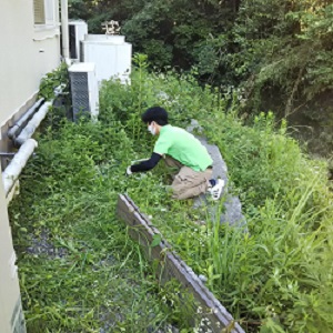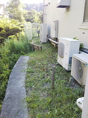 梅雨真っ只中の蒸し暑い中、先日から数日に渡って建物裏の草取りに