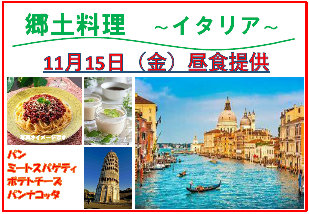 今月は「イタリア料理」を予定しています。