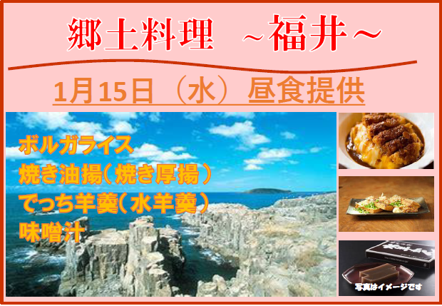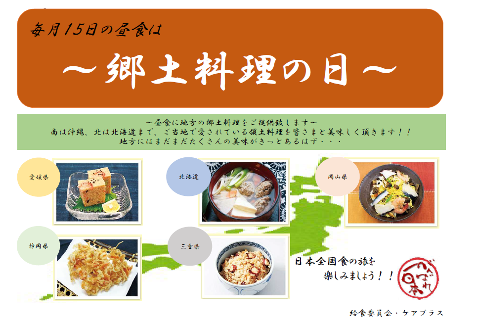 毎月15日の昼食は日本各地の郷土料理を提供しています♪