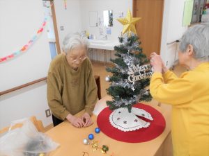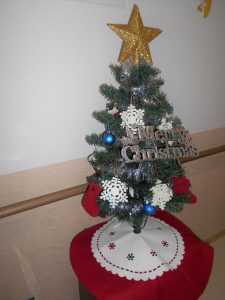 クリスマスツリーが、飾ってありました。こいらは、食堂前に飾っているツリーです。