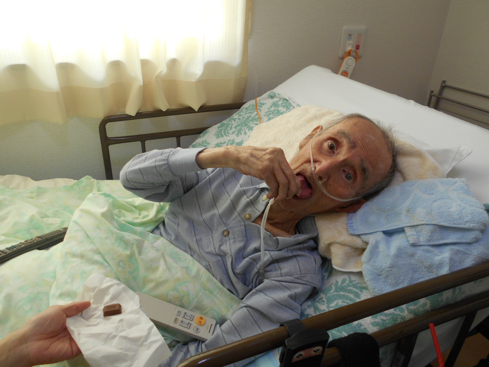 娘様からの差し入れのチョコを 『食べるよ。今がシャッターチャンスや』