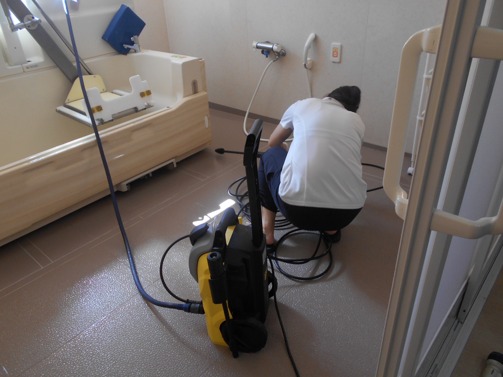 Yリーダーが、高圧洗浄機を準備しだしたので、手伝うと