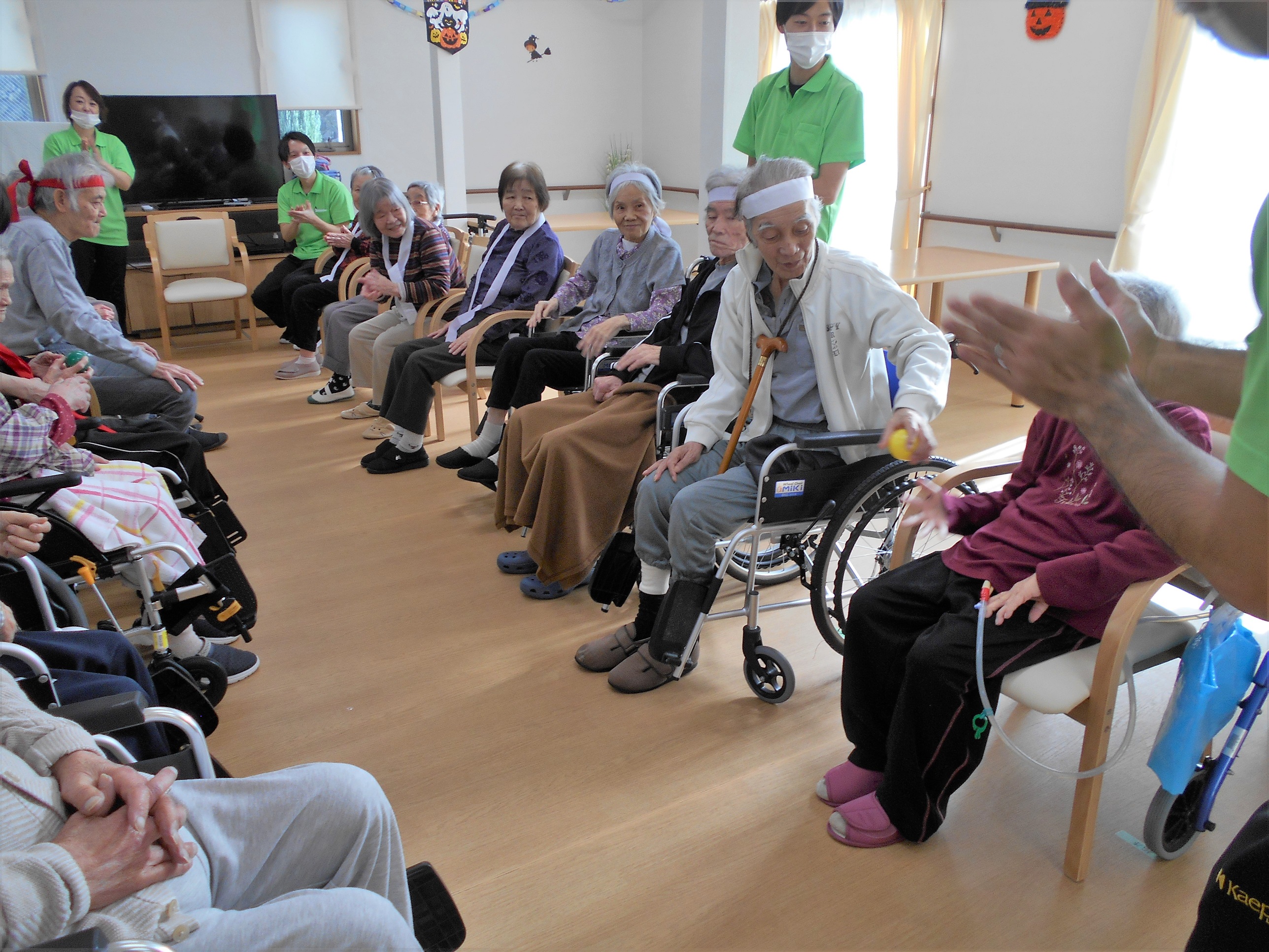 白組の皆さんも、大きく体を動かして、競争を忘れて、楽しんでくださってます。