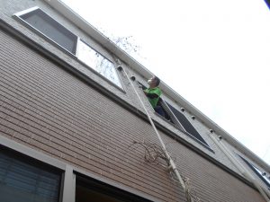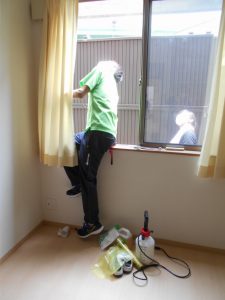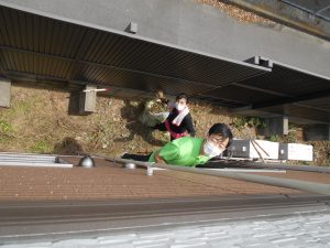 下で格闘していたYリーダーと、作業を眺めていたOサ責が見上げてました。