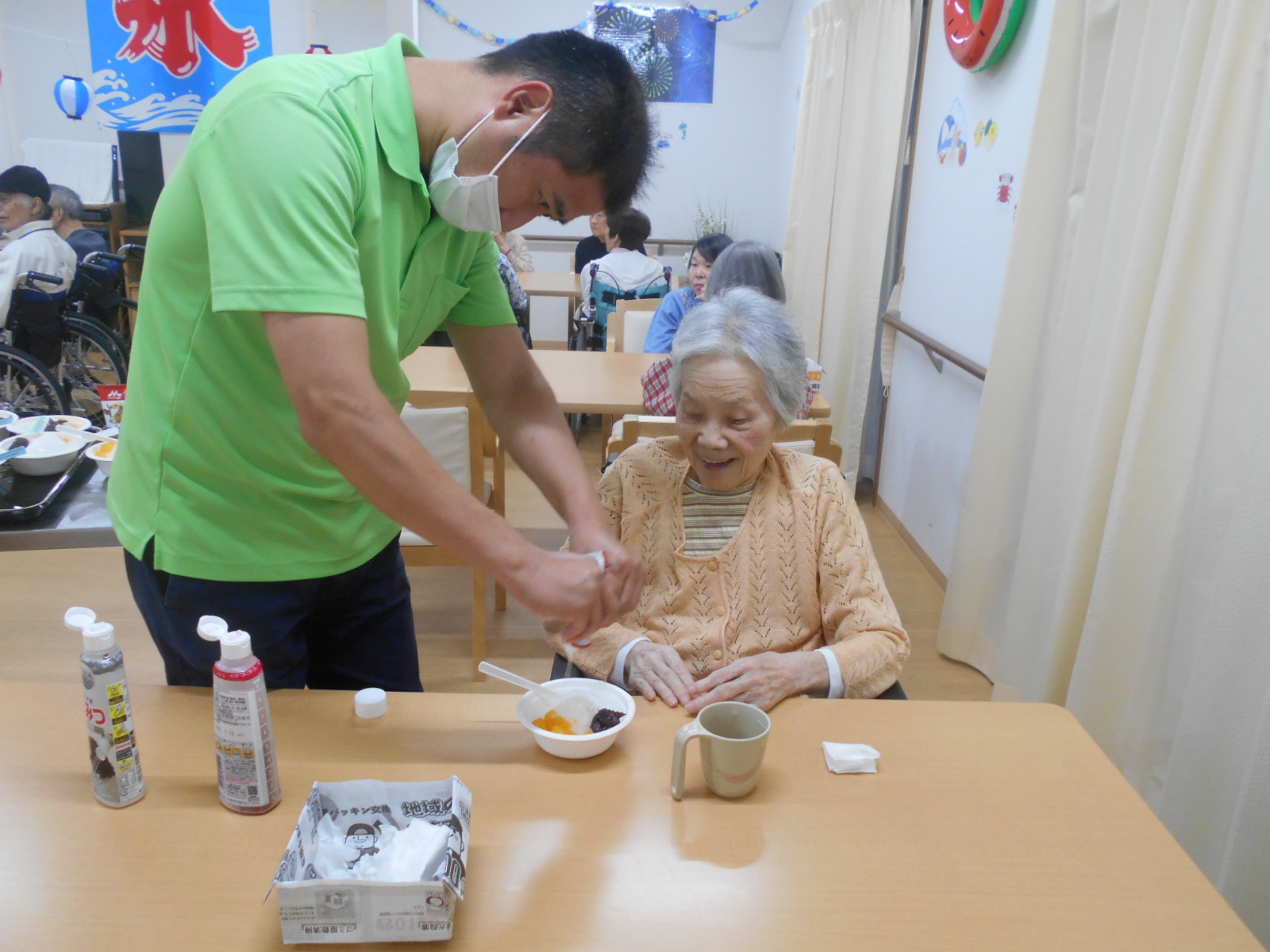 入居者様に、食べていただいてる間に