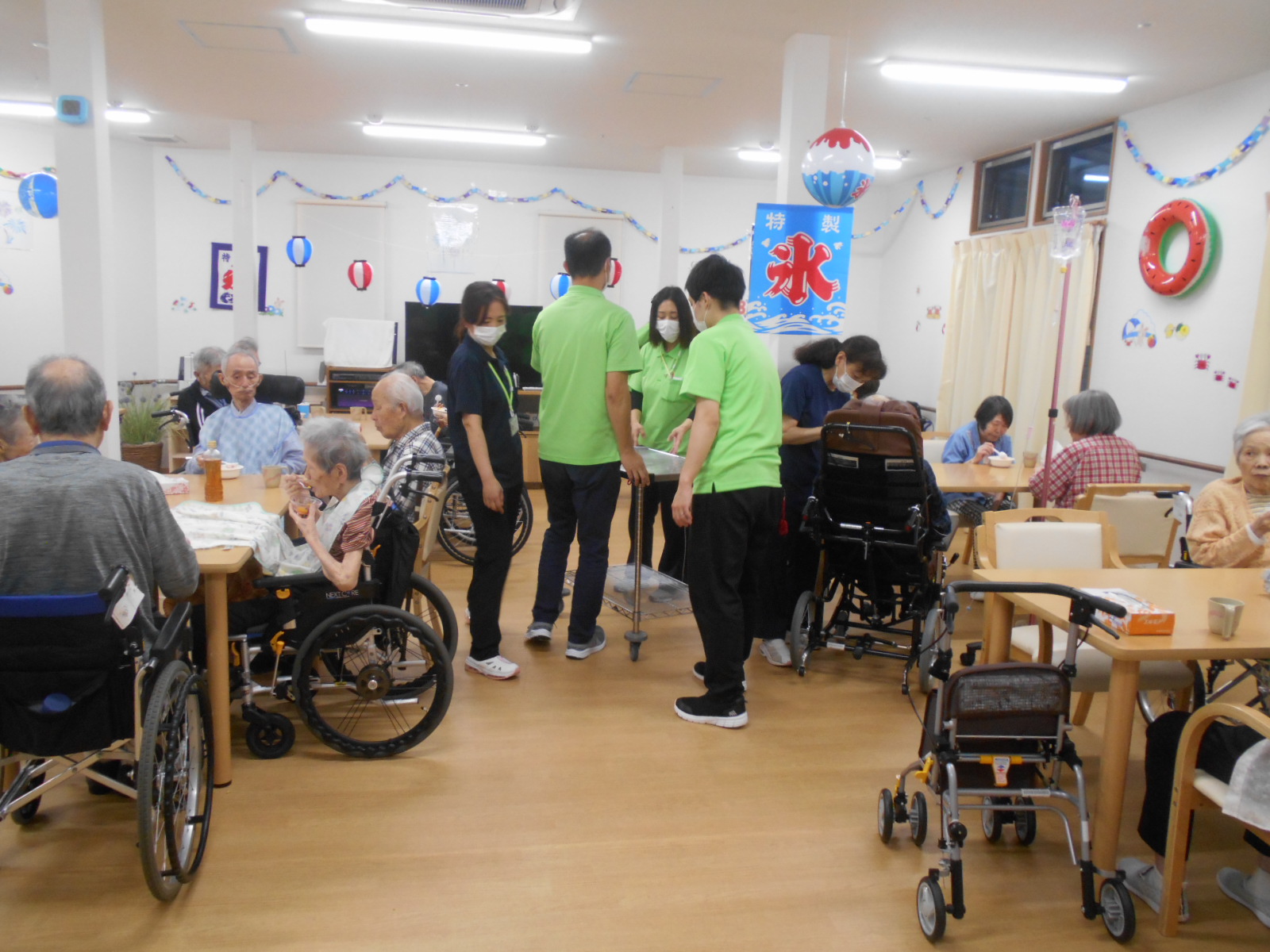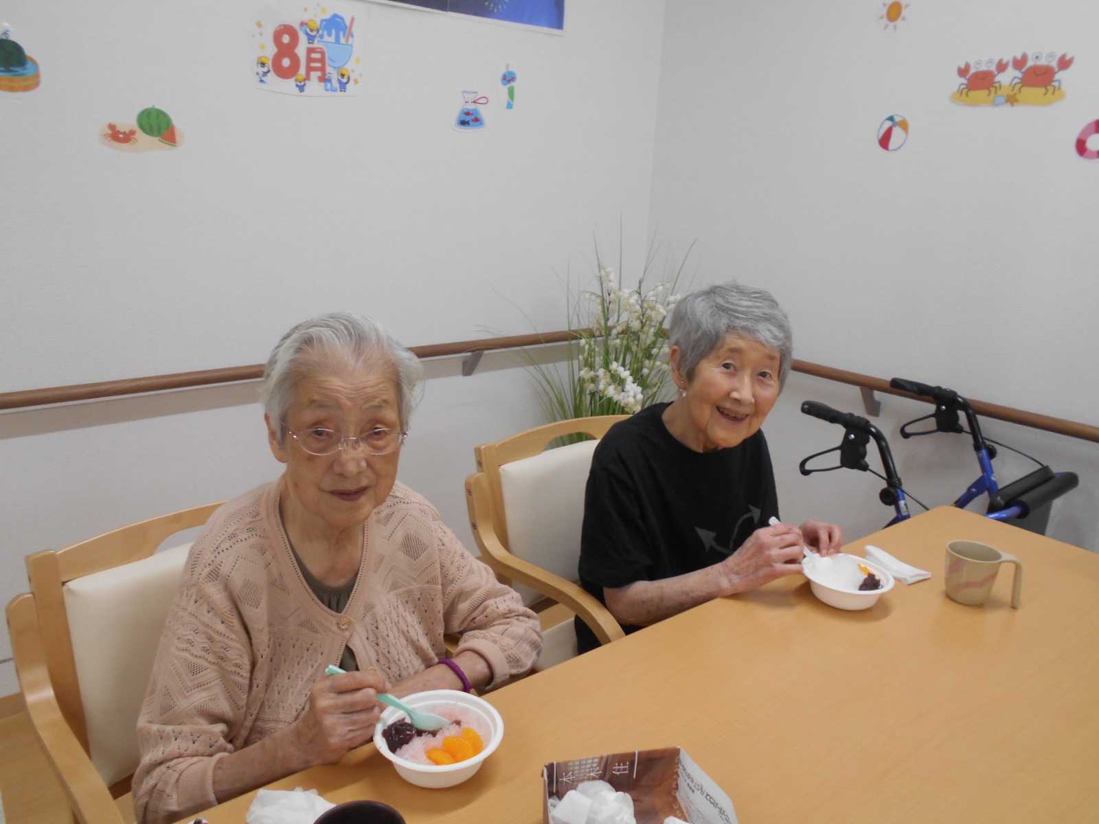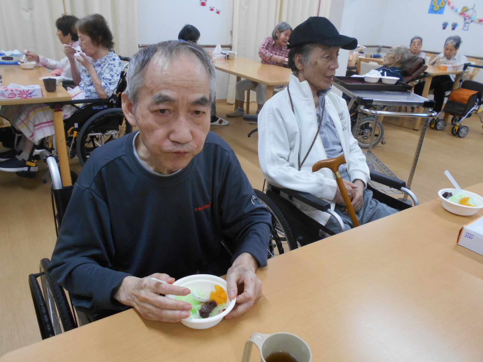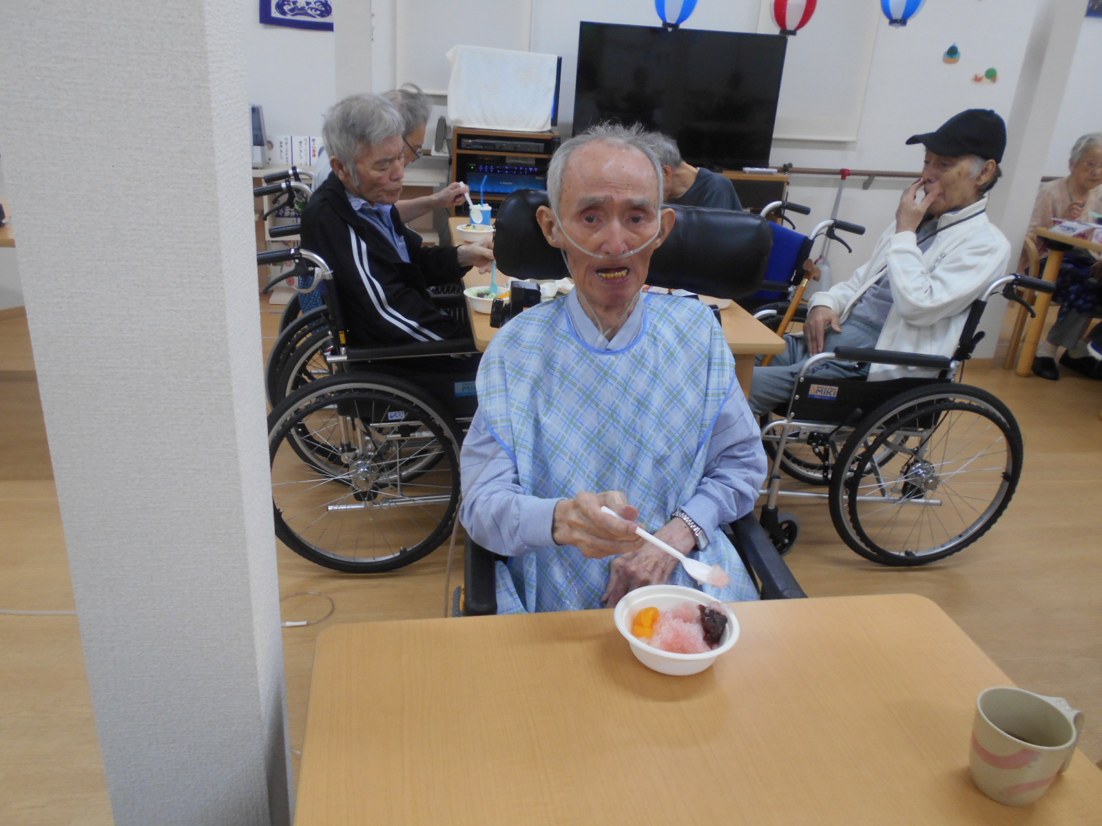 といううことで、今月のレクリエーションは花火🎆鑑賞。まずは、食後のデザートがてら、かき氷を