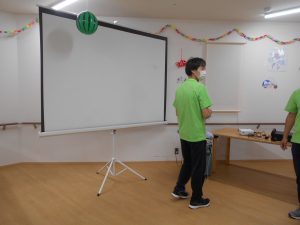 Mマネージャーも、練乳係。Oサ責は、スクリーンの用意を