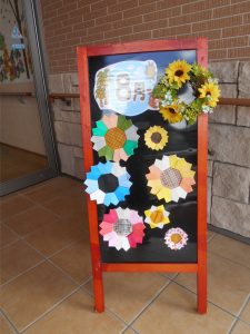 ウェルカムボードも、夏らしくY事務員の力作のひまわりを、わたくしが飾りました。