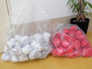 今日は玉入れの玉を作ってくれていました!