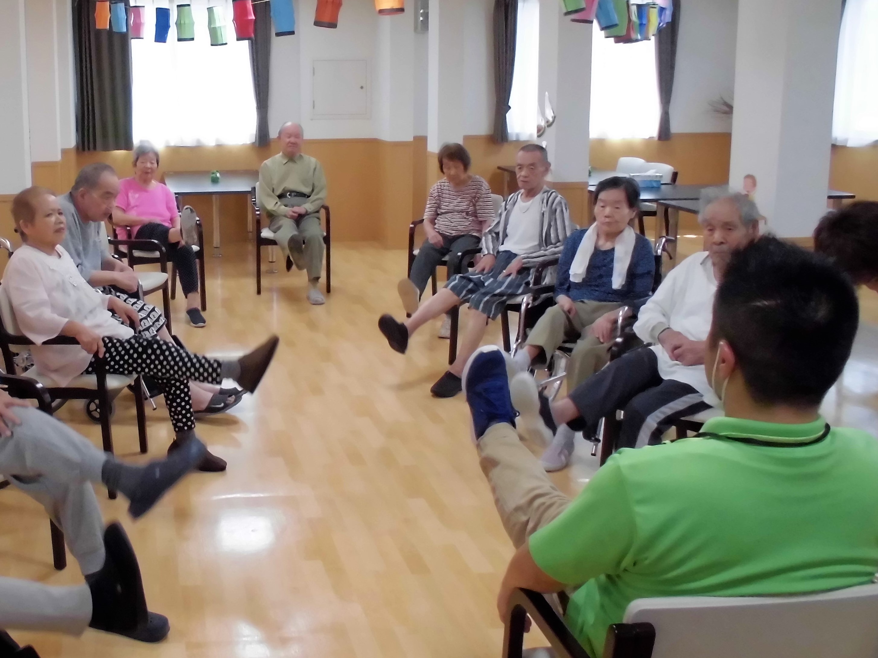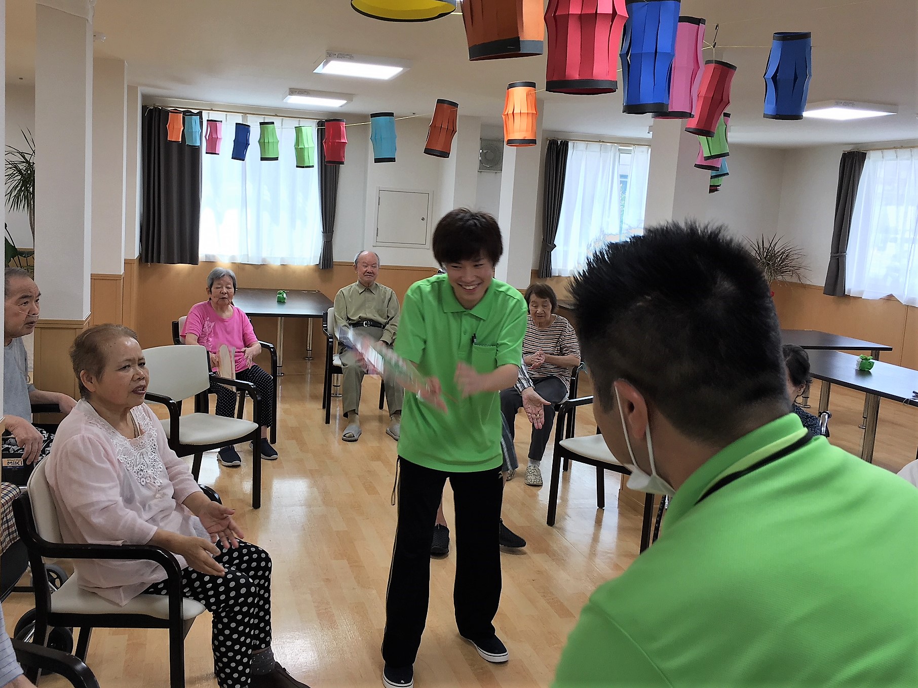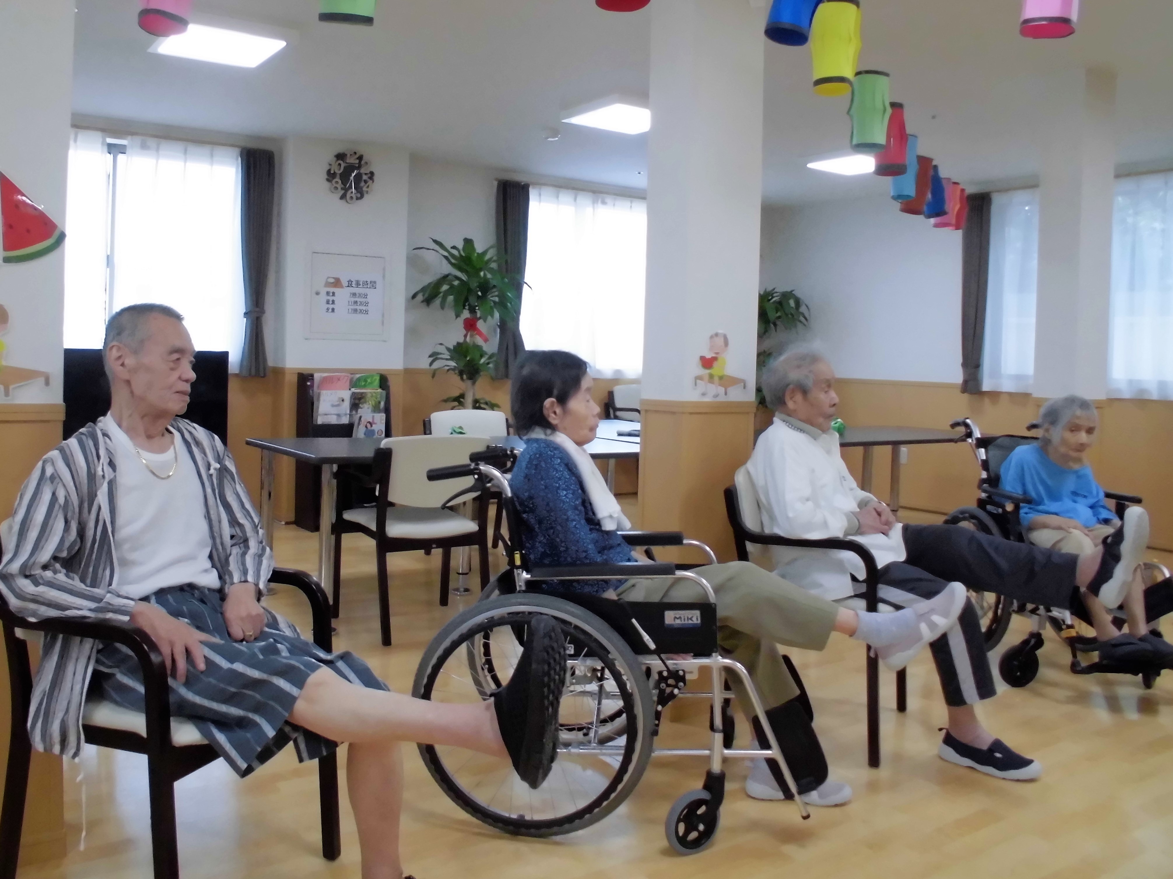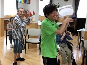 利用者様を交えての盆踊り練習♪